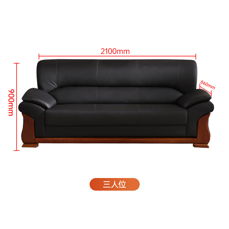 实木办公沙发三人位