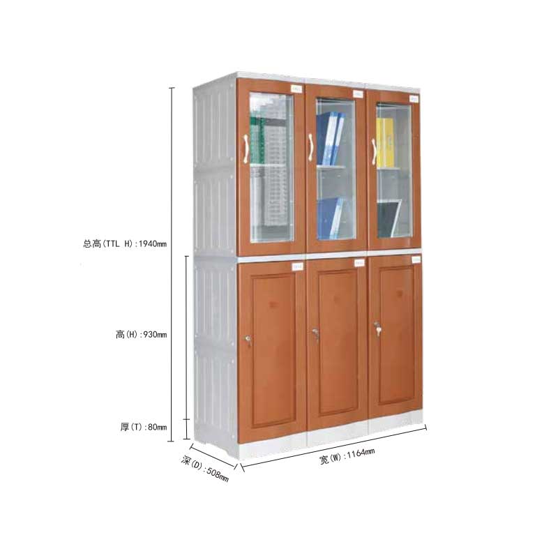 ABS塑料文件柜储物柜六门带玻璃