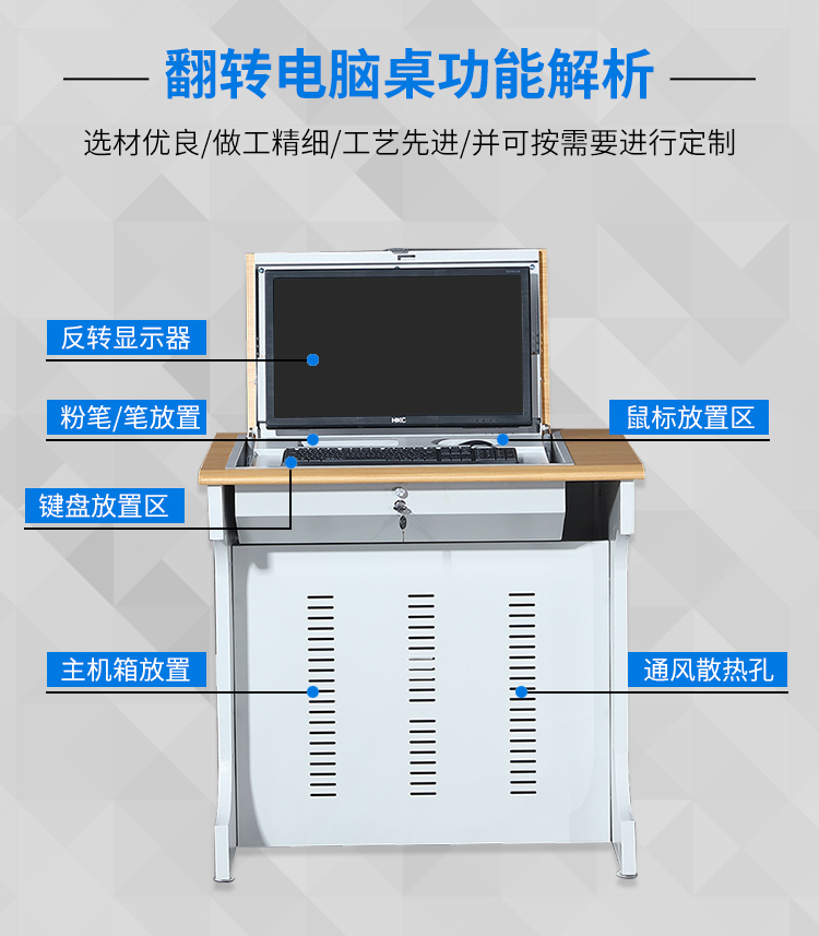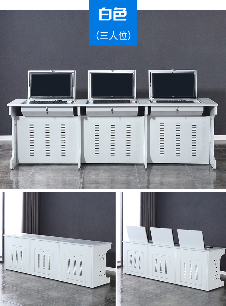 电脑翻转桌三人位2400*700*750
