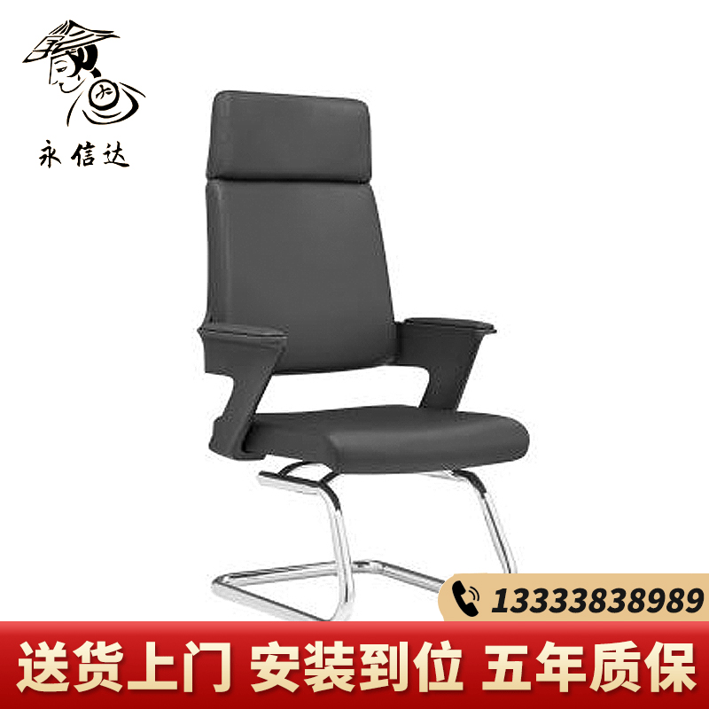 永信达 职员椅电脑椅弓形家用皮椅会议办公椅 黑色皮椅
