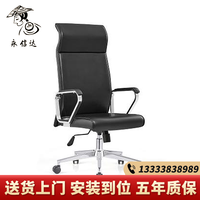 永信达黑色皮椅会议室转椅可升可旋转老板椅总裁办公椅电脑书房座椅