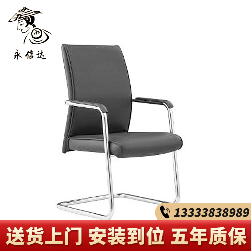 永信达 职员椅电脑椅弓形家用皮椅会议办公椅 黑色皮椅