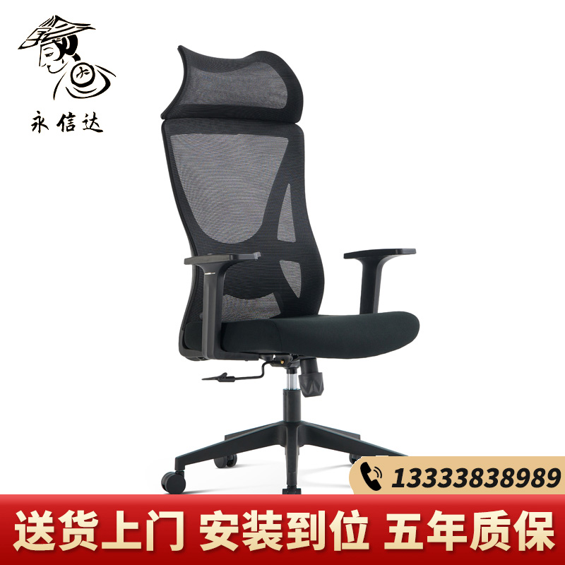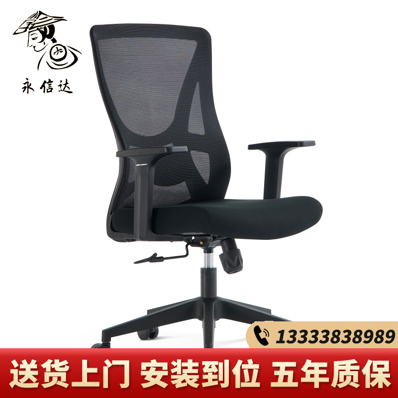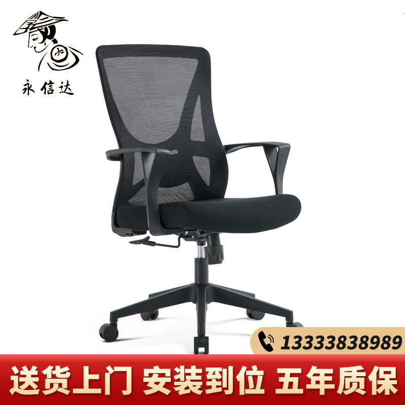 永信达 黑色办公室座椅 透气网布人体工学电脑椅舒适靠背椅